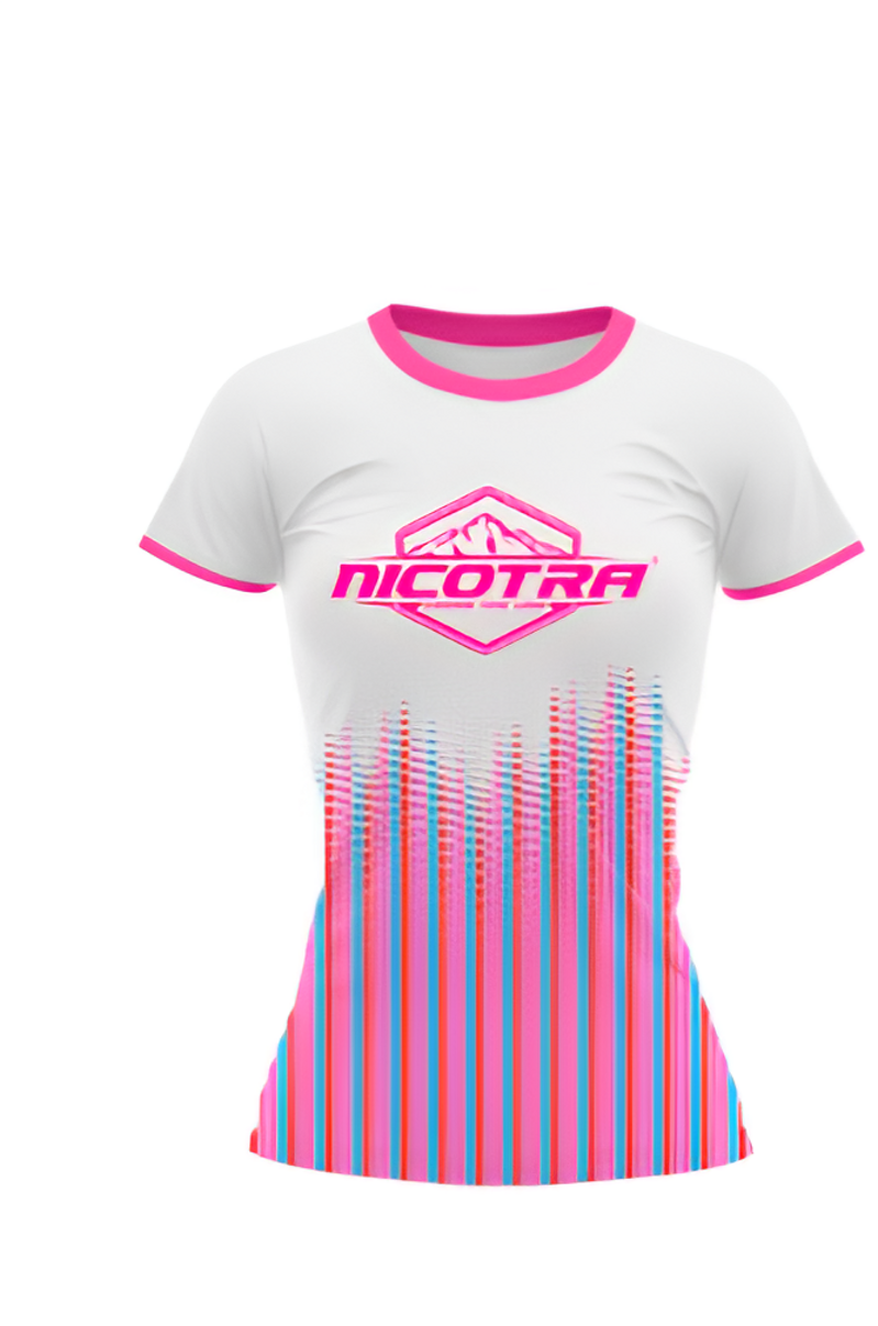 Maglia Running Donna in tessuto poliestere traspirante. Completamente realizzato con tecnica di stampa "Sublimatica" indelebile e non consistente al tatto.